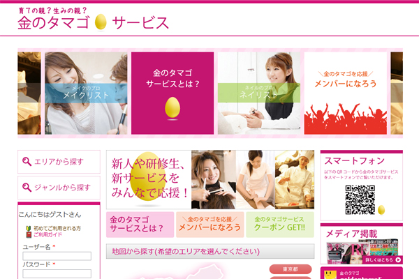 [利用客] 金のタマゴサービス検索、会員登録、クーポン取得、メルマガでの情報提供