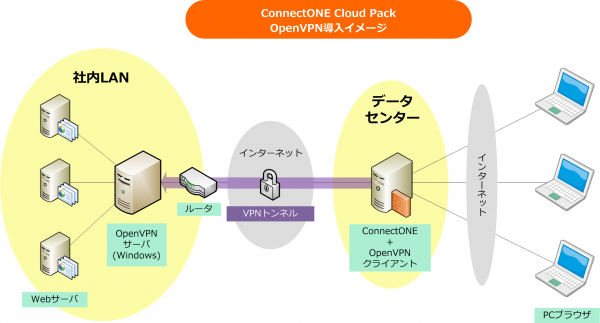 この度、コネクトワンがセキュリティゲートウェイ製品ConnectONEサーバのクラウドサービスを提供するにあたり、ConnectONEサーバとお客さま環境とをセキュアにVPN接続するソリューションとして、プラムシステムズが長年にわたって培ったOpenVPNの導入・運用ノウハウが評価され、「OpenVPNサポートサービス」が採用されました。