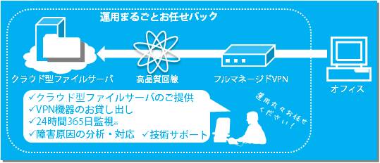 昨今、アウトソーシングを目的とした企業システムのクラウド利用への注目が高まる一方で、セキュリティ面の不安や障害対応への不安が多く存在するのが現状です。本キャンペーンでは「クラウド型ファイルサーバ」に「高品質回線」「フルマネージド型VPN」をセットにした「運用まるごとお任せパック」を提供することにより、セキュリティ面の担保は勿論のこと、障害対応や運用に掛かる手間をまるごとお任せ頂けるようになります。