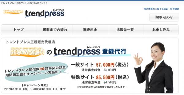 トレンドプレスは、約50ものメディアサイトにあなたのサイトに関する記事を配信できる記事体広告作成サービスです。