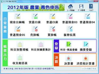 「2012年版 農業 青色申告」は65万円控除の2012年度分対応 農業用青色申告決算書が単式の入力で作成・印刷できるソフトです。