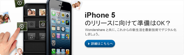 Wondershareは、iPhone 5のリリースに向けて、iPhone 5の出力形式に対応するように、『スーパーメディア変換!』(Win版&Mac版)をアップグレードしました。『スーパーメディア変換!』(Win版&Mac版)は高速・高品質で動画・音楽・DVDを変換するソフトで、現在、Wondershare新製品お買い得キャペーンにて、20%オフの特別価格で好評販売中。