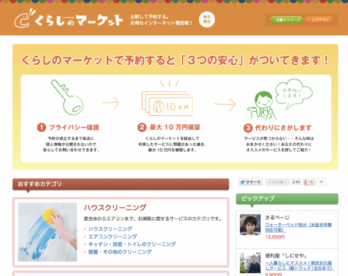 くらしのマーケットは、家事代行やハウスクリーニング、不用品回収などの「出張・訪問サービス」を提供する「地元の専門業者」が出店する、ローカルマーケットプレイスです。出店は無料。出店者は顧客を獲得した場合のみ、少額の手数料をくらしのマーケットに支払います。(現在はキャンペーン中のため完全無料です)