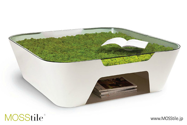 モスタイル以外にもイタリアの有名スタジオでは苔を家具やテーブル、電化製品等のインテリアイテムと融合させたモスデザイン(MOSSdesign)製品も発表している。