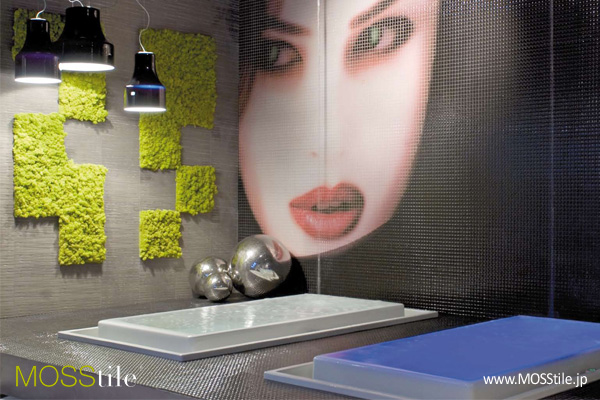 そんな苔が、自然の感性が感じられる美しい室内インテリアアイテムに変身した。最近、環境重視の時代を迎え、グリーンライフスタイルへの関心が集まる中、建築や日常生活にグリーンアイデアを取り入れる例が続々と登場している。これに伴い、室内空間に自然の息遣いを実現するVertical Garden (バーチカルガーデン)の導入が増え、新たな概念の苔タイルが注目を集めている。グリーンシンドローム(代表イ・チャンホ)が発売するイタリアのブランド、モスタイル(MOSStile(R))は、自然の感性を室内で楽しむため、ヨーロッパ産の苔を環境型タイルに融合させたグリーンインテリアアイテムである。12種類の多彩なカラーを用いた、柔らかでアンティーク感ある苔タイルで、壁等を自然の感覚そのままにデザインする事が出来るのが特徴。好みのスタイルにカットし、他のカラーと組み合わせればモダンなイメージからアンティークなイメージまで、さまざまな演出が可能である。