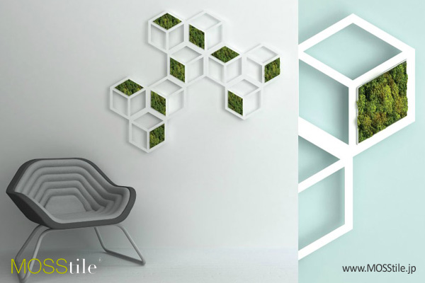 そんな苔が、自然の感性が感じられる美しい室内インテリアアイテムに変身した。最近、環境重視の時代を迎え、グリーンライフスタイルへの関心が集まる中、建築や日常生活にグリーンアイデアを取り入れる例が続々と登場している。これに伴い、室内空間に自然の息遣いを実現するVertical Garden (バーチカルガーデン)の導入が増え、新たな概念の苔タイルが注目を集めている。グリーンシンドローム(代表イ・チャンホ)が発売するイタリアのブランド、モスタイル(MOSStile(R))は、自然の感性を室内で楽しむため、ヨーロッパ産の苔を環境型タイルに融合させたグリーンインテリアアイテムである。12種類の多彩なカラーを用いた、柔らかでアンティーク感ある苔タイルで、壁等を自然の感覚そのままにデザインする事が出来るのが特徴。好みのスタイルにカットし、他のカラーと組み合わせればモダンなイメージからアンティークなイメージまで、さまざまな演出が可能である。
