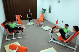 女性の筋力でもスムーズな運動が可能な油圧式マシーンを使ったトレーニングとリズミカルな