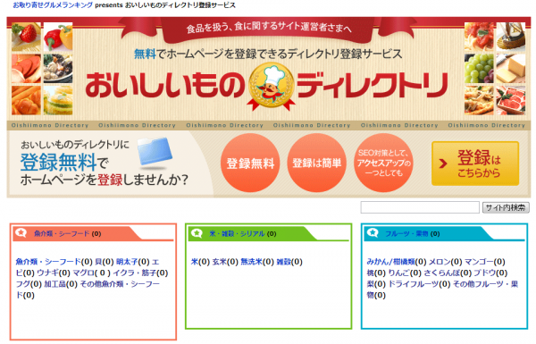 「おいしいものディレクトリ」は、グルメ系ネットショップ向けの無料ディレクトリ登録サービスです。