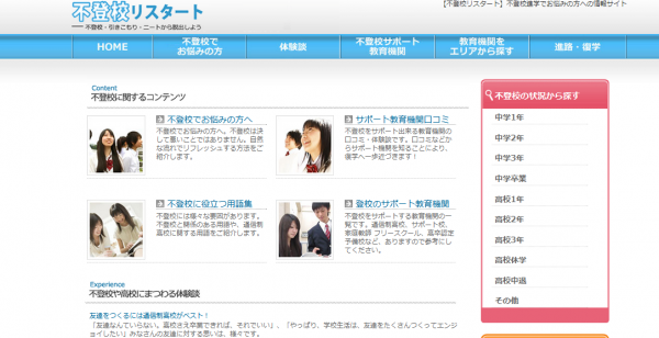 もちろん「不登校でお悩みの方へ」や「復学以外の解決方法」など、気になる情報も満載!