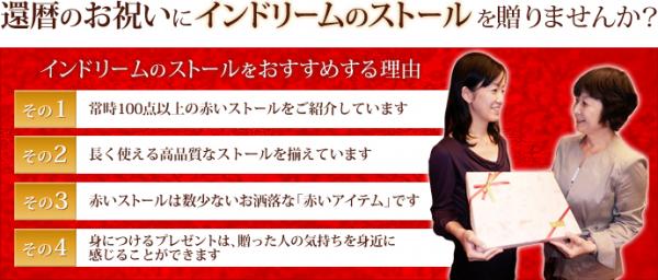 ストール専門店インドリームでは還暦祝いに赤いストールをお求めになる方が多いことから、