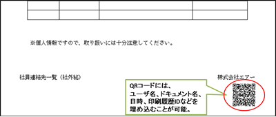 これにより、印刷されたQRコードを読み取ることで、印刷ユーザの特定が容易にできます。