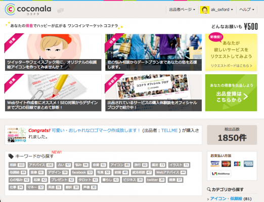 ココナラは、サービスの取引価格を一律500円に設定しています。しかしながら、最近ではココナラでのサービス提供をきっかけに、本業や副業での仕事を受注される出品者の方が増えております。特に、デザイン・イラストやコンサルティングの領域で、500円のサービスを受けて満足された購入者の方が、より高額なお仕事を出品者の方に別途依頼されるケースが多いようです。