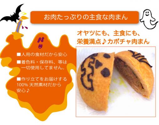 ・ハロウィーンのカボチャのお化けの型をした、肉まん。