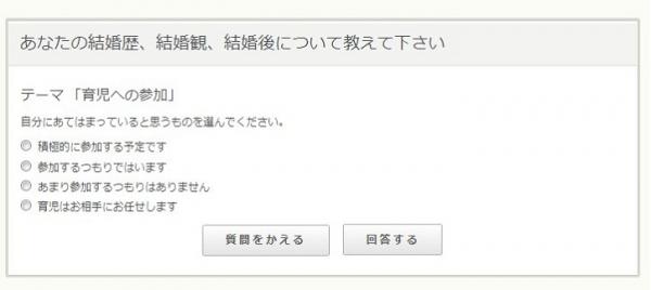 質問に回答していただくと、その質問に対して実際に異性がどのような回答を求めているのか、また、ご自身が回答した結果を求めている異性にはどのような傾向があるのかを知ることができます。