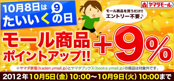 10月8日(月)は「たいいく(9)の日」ということで、【+9%】のポイント付与率となっております。