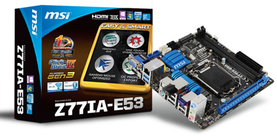 Z77IA-E53は、Intel Z77チップセットを搭載、高速インターフェースPCI Express 3.0に対応したMini-ITX規格、LGA1155、DDR3デュアルチャンネル対応のマザーボードです。Microsoft Windows 8 WHQL認証取得、第3世代Intel Coreプロセッサに対応、CPUに統合されたGPU機能を利用することが可能で、K付きアンロックCPUのオーバークロックに対応します。オンボードmSATA接続コネクタと高速無線通信規格Wi-Fi 802.11b/g/n、Bluetooth V3.0+HS搭載、快適なワイヤレス環境の構築が可能です。