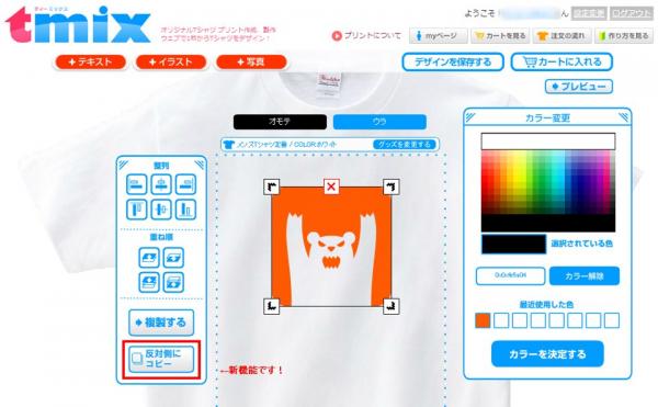 2012年10月5日にウェブ上でTシャツをデザインするためのエディタツールに新機能追加致しました。