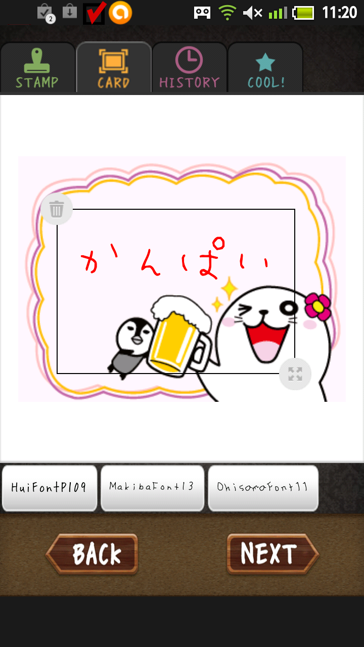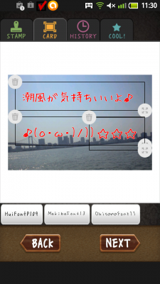今回追加された機能は文字入力機能を中心に、それに対応したテンプレートの追加や、カメラ、ギャラリーからの画像を取り込んでメッセージを追加する事も出来ます。