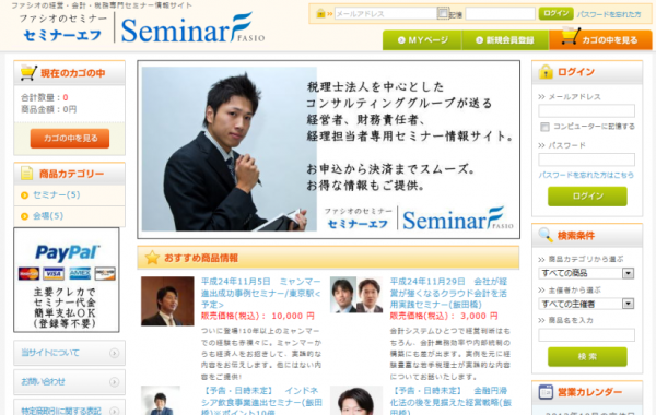 株式会社ファシオ・コンサルティング(東京都千代田区、代表取締役 八木橋泰仁)は、会計事務所としては珍しい、クレジットカードで料金の決済を可能としたセミナー申込サイト、「セミナーエフ」(http://fasio.biz/seminar)をオープン致しました。