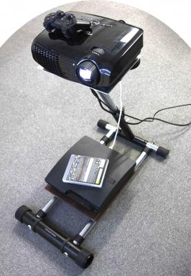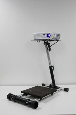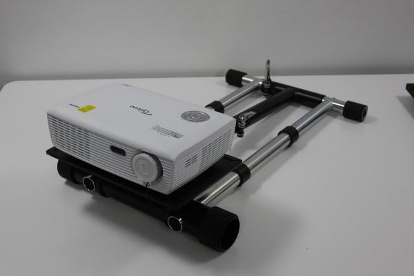 ● 3Dプロジェクター(Optoma 3DW1 オールインワン・3Dプロジェクター または Optoma GT750 短焦点・3Dプロジェクター の2モデルを用意)とスマートプロジェクタースタンドの一体型セット(組み立て式)です。