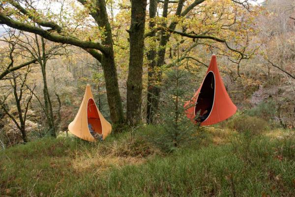 Cacoon(カクーン)は、イギリス人の建築家兼デザイナーがバカンスで訪れたメキシコで見た、木の上の小さな鳥の巣からヒントを得て作られた。Cacoon(カクーン)は、恋人同士が浜辺で真っ赤な夕陽を眺めたり、美しい花が咲き誇る野原の風景を楽しんだり、一人で静かに読書をする事もでき、自分だけのスペースで憩い、様々な想いを巡らせる事が出来る。Cacoon(カクーン)には一人用と二人用があり、フレームを下にして木等にぶら下げて使用し、テントよりも手軽に設置する事が出来る。