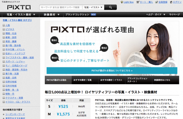 PIXTAは、低価格・高品質なビジュアル素材を提供するマーケットプレイスサイト