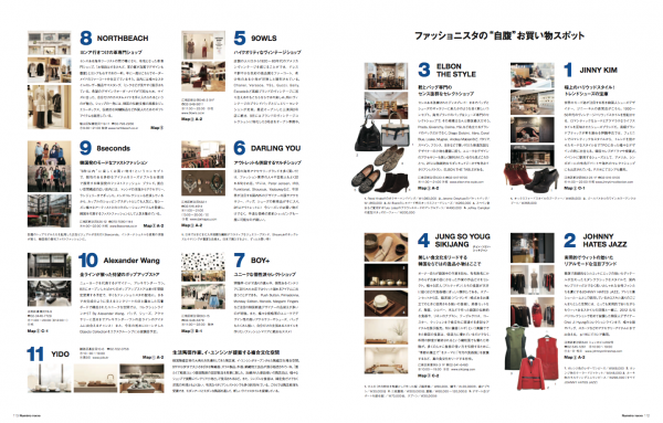 韓国・ソウルを活動の拠点とするファッションディターやスタイリストたちが実際に、“自腹”で通うリアルモードな最新ショップデータも満載です。