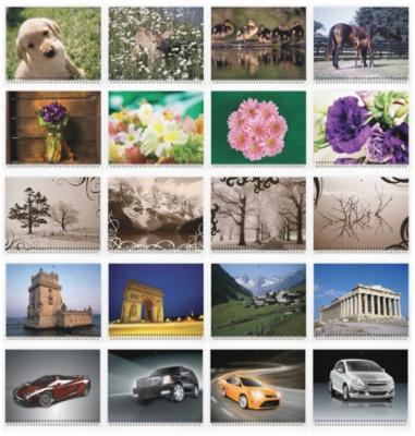 ビスタプリントでは、例年一番人気の壁掛けカレンダーのほか、卓上カレンダー、ポスターカレンダー、カードカレンダー、カレンダーマグネットなど幅広いバリエーションを取り揃えております。また、「花」、「風景」、「動物」、「車」等をテーマとする20種類以上ものデザインテンプレートからお好きなデザインをお選びいただけるほか、すべての月にお好みの写真をアップロードすることも可能です。