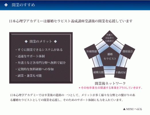 卒業で終わりではなく全て当校がバックアップする事により、短期間でプロのカウンセラーとして開業する事ができます。