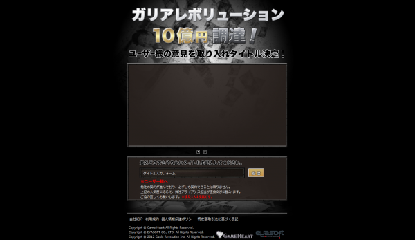 ガリアレボリューション株式会社(代表取締役:森田 英嗣以下ガリアレボリューション)は、ポータルサイトGAMEHEARTでオンラインゲームの日本国内運営サービスを選定するにあたり、広く皆様のご意見を頂戴する「意見投稿」ページを公開いたしました。詳しくは以下をご欄下さい。