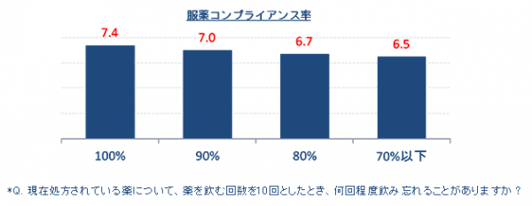 薬剤師の説明内容に対する満足度を、現在処方されている薬剤の服薬コンプライアンス率*(注:処方せんの指示通りに服用する)別に分析してみた。結果は、 服薬コンプライアンスが良好であるほど、薬剤師の説明内容に対する満足度が高い。因果関係は不明なものの、薬剤師の説明内容と服薬コンプライアンスには、 相関があることが示唆される。