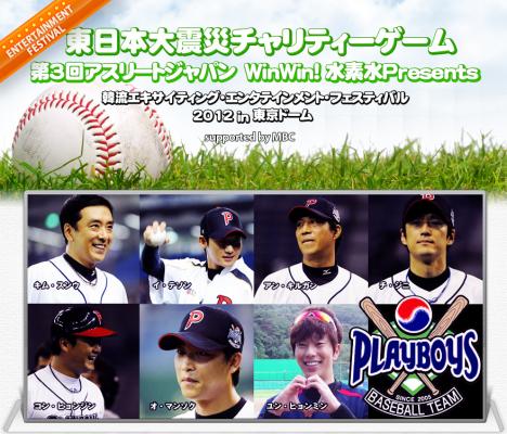韓流スター"キム・スンウ"率いる韓流野球ドリームチーム"PLAYBOYS"と日本のプロ野球OBチームが今年も東京ドームで激突! 熱いゲームを繰り広げます。