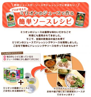 全国の飲食店のプロが開発!“ミリオンジュースで作る簡単ソースレシピ” はこちら