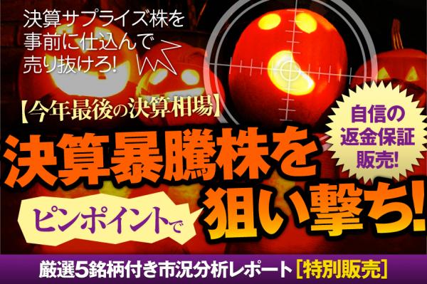 ・商品名:厳選5銘柄付き市況分析レポート「決算暴騰株をピンポイントで狙い撃ち!」