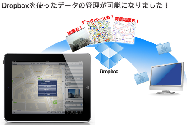 カンタンマップで追加したデータや画像をDropBoxに保存出来ます