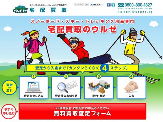 「ウルゼ」の取扱件数倍増は、このような利便性の高さをご支持いただけたものと思っております。今後も、ネットを通じたスノーボード、スキー、トレッキング用品専門の宅配買取サイトとして、よりいっそう便利なサービスを開発・提供していきたいと考えております。今後ともよろしくお願いします。