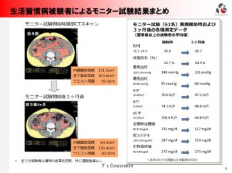 特に注目される点は、肝機能の改善、アディポサイトカインの発現の正常化(アディポネクチンの発現の上昇、PAI-1の発現の減少)、および内臓脂肪量が大幅に減少したことであった。
