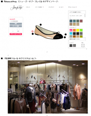 『Shoes of Prey (シューズ・オブ・プレイ)』は、株式会社マルイグループの「京都マルイ」シューズフロアにて、2011年4月から現在も販売をしておりますが、レディスファッションフロアにて、洋服と一緒に店頭販売をするのは初めての試みとなります。