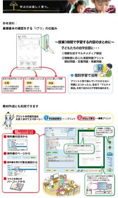 「みんなの学習クラブ」は国内大手の教育事業者である株式会社日本コスモトピア(大阪市:代表取締役社長 下向 峰子 以下、コスモトピア)が制作する小学校・中学校・高等学校向けのインターネット配信型の教育システムであり、学習プリント一つ一つにバーコードがついており、それをスキャンすることで、生徒自らが授業の進度や理解度に応じた学習プリントを取り出したり、動画と音声によるわかりやすい「マルチメ解説」を閲覧できるのが特長です。