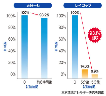 布団内のダニの死がいやフンは、天日干しでは3.8%しか除去できないという実験データもあるので、ダニによるアレルギーの予防のために、より効果的な布団ケアが必要です。