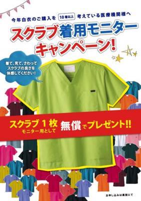 ■フォーク株式会社は、この秋より、2012年中に白衣の購入をご検討されている医療機関さまに向けて、スクラブ1枚をモニター用として無償でプレゼントするキャンペーンを10月26日より開始しております。