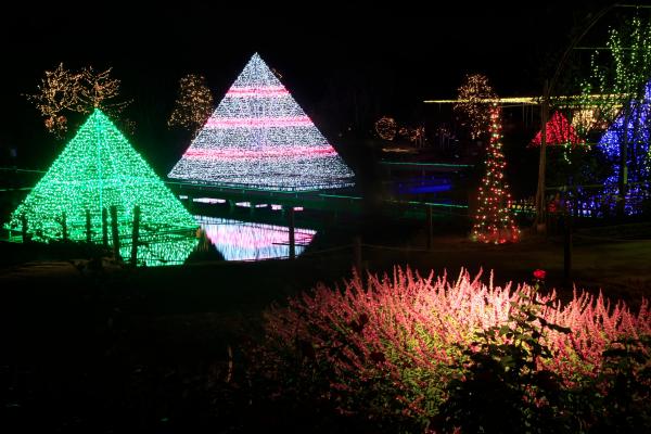 電飾で彩られた花の庭では、180万球を使用し園内全体を光のテーマパークへと変化させている。