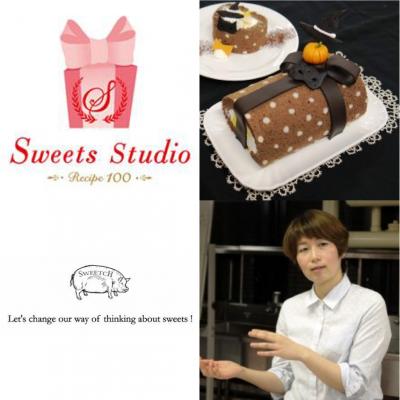 第12回目の「SWEETS STUDIO recipe 100」には、オーダースイーツ専門店「SWEETCH」の笠尾美絵さんをゲストに招き実施。今回のテーマは「デコレーション」。ウエディングケーキや、CDのジャケット撮影、雑誌の表紙などに使われる、デコラティブなお菓子でも人気がある笠尾さんから、「米粉のロールケーキ」のレシピを使って、水玉模様の生地の作り方や、プラスチックチョコレートやアイシングといったテクニックを使い、ハロウィンを意識したロールケーキのデコレーションを披露してくださいました。