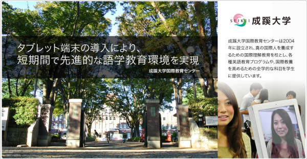 各種英語教育プログラムや、国際教養を高めるための全学的な科目を学生に提供している成蹊大学国際教育センター様では、iPadの導入と平行して、株式会社マジックハットのeラーニングソフト starQuizを導入し、学生の語学学習プログラムにおいて大きな成果をあげています。
