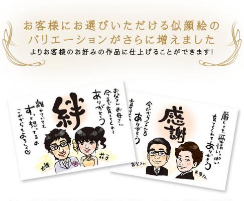 言葉のプレゼント(広島市中区広瀬北町3-11和光広瀬ビル4階、代表 片上明)は、似顔絵と筆文字で作る結婚式の両親へのプレゼント「似顔絵言葉のプレゼント(http://www.kotopure.com/)」の似顔絵を描く絵描き屋に、アニメタッチが人気の「IBUKI(ペンネーム)」さんを追加しました。