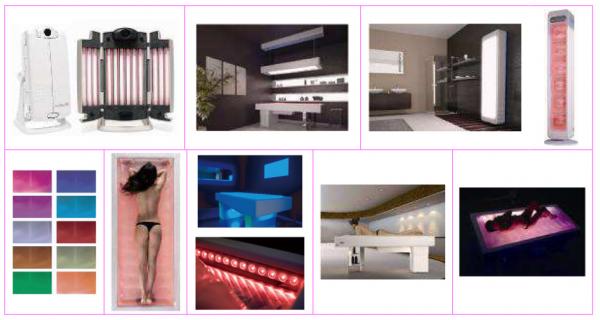 「ビューティーワールドジャパンウエスト」では全身タイプのSCIC(シック)、LUXO(ルクソ)と来年2月発売予定の卓上フェイシャルタイプの他、イタリアデザイナーズ光エステベッドSENSO(センソ) を展示させていただきました。SENSOは温熱効果のあるウォーターベッドを中心にクロモセラピー機能、リラックスする香りを出すアロマディフューザー機能を兼ね備えたベッドです。SPOT(スポット)と呼ばれるパネルを組み合わせることによって、部屋中にクロモセラピー効果をもたらすことができます。
