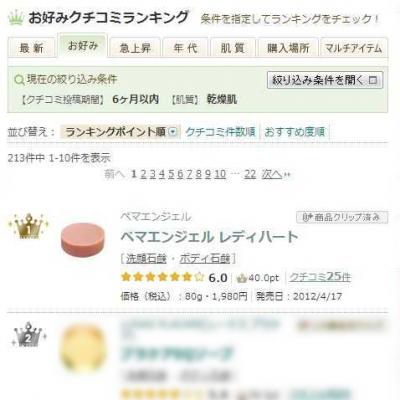 ボディ石鹸・乾燥肌部門クチコミランキングにてペマエンジェルがおかげさまで1位を獲得いたしました。