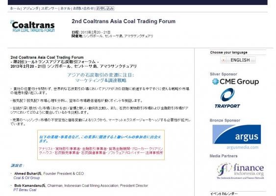 会議:「2nd Coaltrans Asia Coal Trading Forum-第2回コールトランスアジア石炭取引フォーラム-」