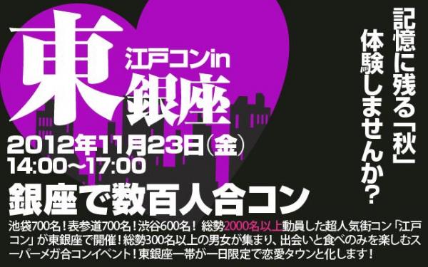 その江戸コンが11月23日に東銀座の地域活性化を目指し、江戸コンin東銀座を開催いたします。