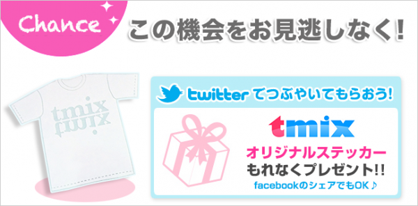 tmixにて購入した際にtmixのURLが入ったツイート(facebookのシェアでも可)をした方。